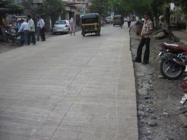 In the midst if this chaos, there is an alternative solution that seeks a ear, some one to take notice of the benefits it has to offer. It is cost effective, scientifically proven and long lasting. UTWT (Ultra Thin White Topping) , is currently being tested on a 100m road patch in Thane on one of the busiest routes near the Ghantali Mandir. It has taken less than 10 days for Dr. Deshmukh and his team to dig out and re-lay the road. Work has been carried out during late night so that commuters have been least affected. It was only 2 days of stoppage time when traffic had to be diverted so that material could be set.