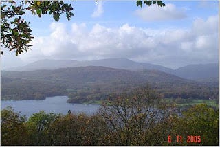 It was a last minute decision to make this trip to Lake District - tickets were bought, the YHA was booked for 2 nights - it was the last weekend before the lakes closed down for Winter. We changed 3 trains and 2 buses to make it here - a good 51/2 hours away from Sheffield into the Lancaster county, very close from the Scottish highlands. The lake district houses 5 of Britains most beautiful and scenic lakes - we went to the biggest ‘ Windermere’. A low budget trip with packed with extreme action - so it included a trek of 4 hours in pouring rain, river crossing on the mountain and a ride in the freezing lake - so serene and calm. This picture is taken from one of the stop overs in the walkathon - which gave a complete birds eye view of Windermere and the last of what the Summer left behind. You can see the leaves drying on the trees and grass turning flame red - signs of the harsh winter creeping in ....
