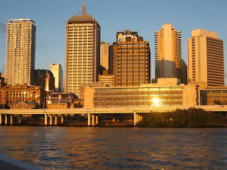 I took this picture while on a boat ride on the Brisbane river - it was an awesome ride - some of best landscapes i have seen - colors of the sky I have never seen before - It feels like the sun painting the whole city in its Yellow and the overwhelming clear blue Skies.